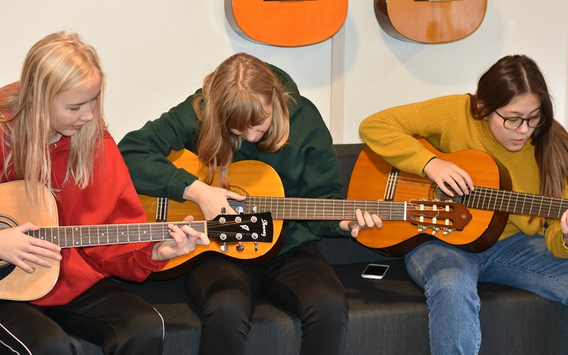 På Staby Efterskole kan du få instrumentundervisning i guitar. Vi arbejder med holdundervisning, hvor der tages udgangspunkt i lette akkordtabeller, guitartabs, anslagsmønstre m.m. Spotify, guitar-apps og andre webressourcer vil blive brugt som hjælpemiddel i undervisningen, ligesom eleverne vil blive opfordret til at bruge internettet, når de øver selv med deres egne tablets og smartphones. Når du har lært G - Em er du godt på vej ind i det musiske himmerige.