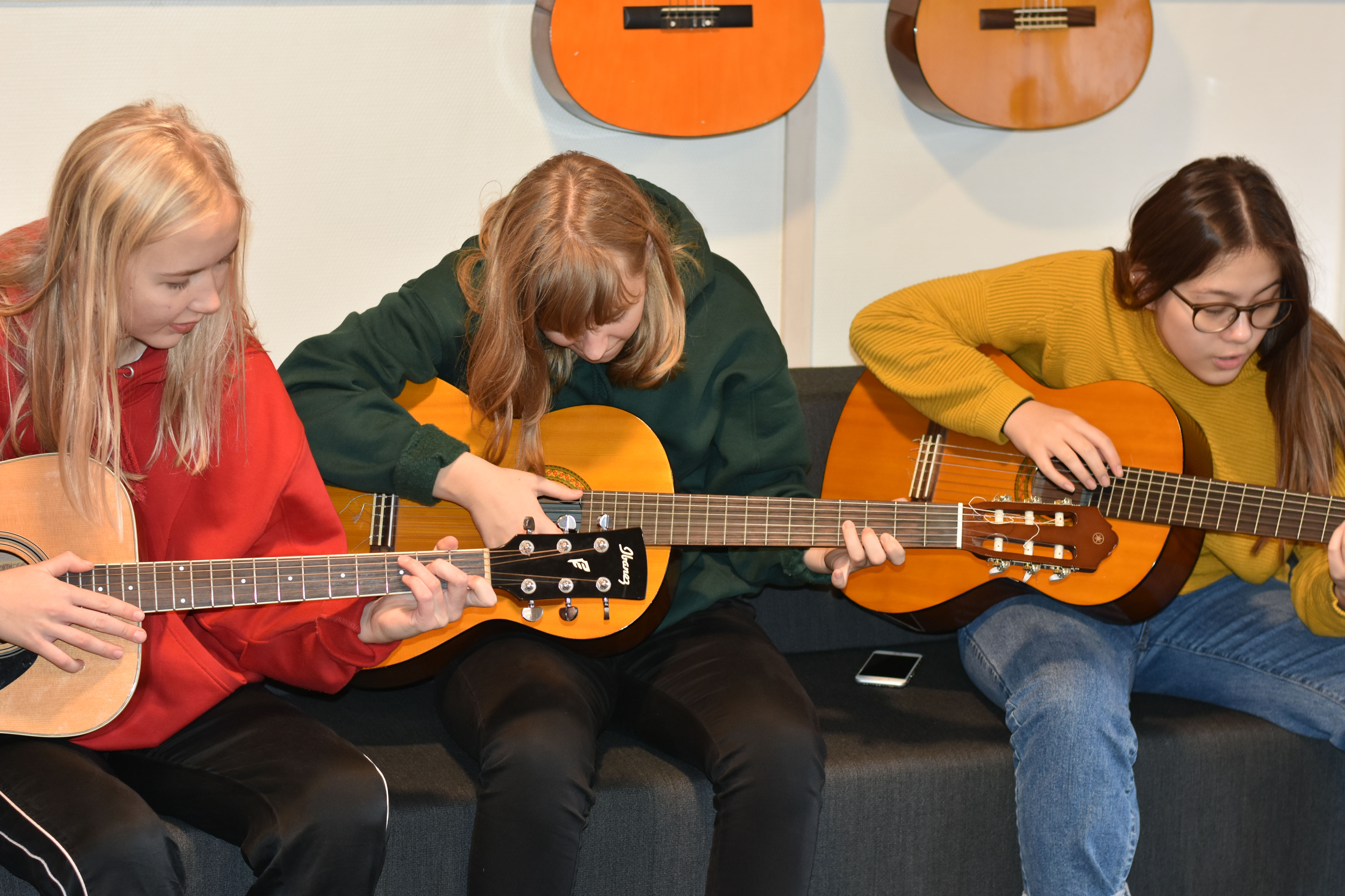 På Staby Efterskole kan du få instrumentundervisning i guitar. Vi arbejder med holdundervisning, hvor der tages udgangspunkt i lette akkordtabeller, guitartabs, anslagsmønstre m.m. Spotify, guitar-apps og andre webressourcer vil blive brugt som hjælpemiddel i undervisningen, ligesom eleverne vil blive opfordret til at bruge internettet, når de øver selv med deres egne tablets og smartphones. Når du har lært G - Em er du godt på vej ind i det musiske himmerige.